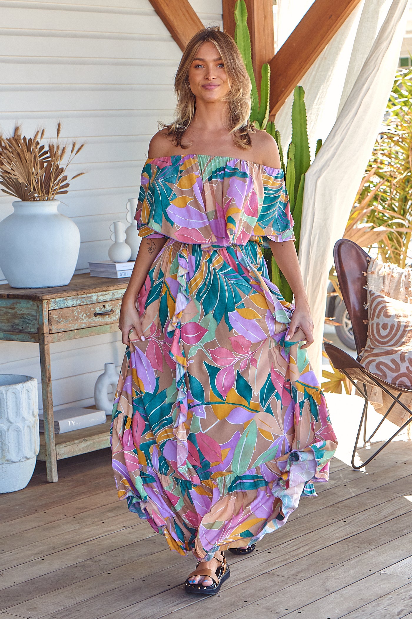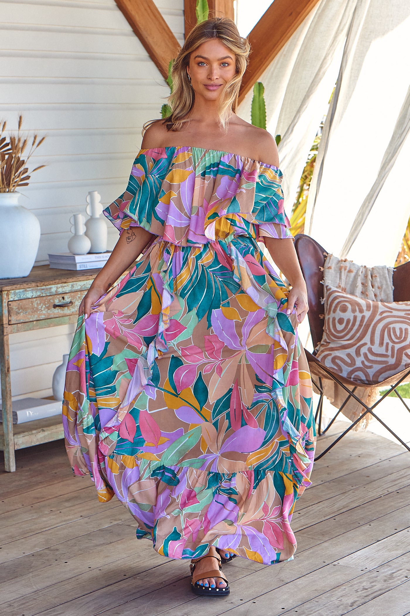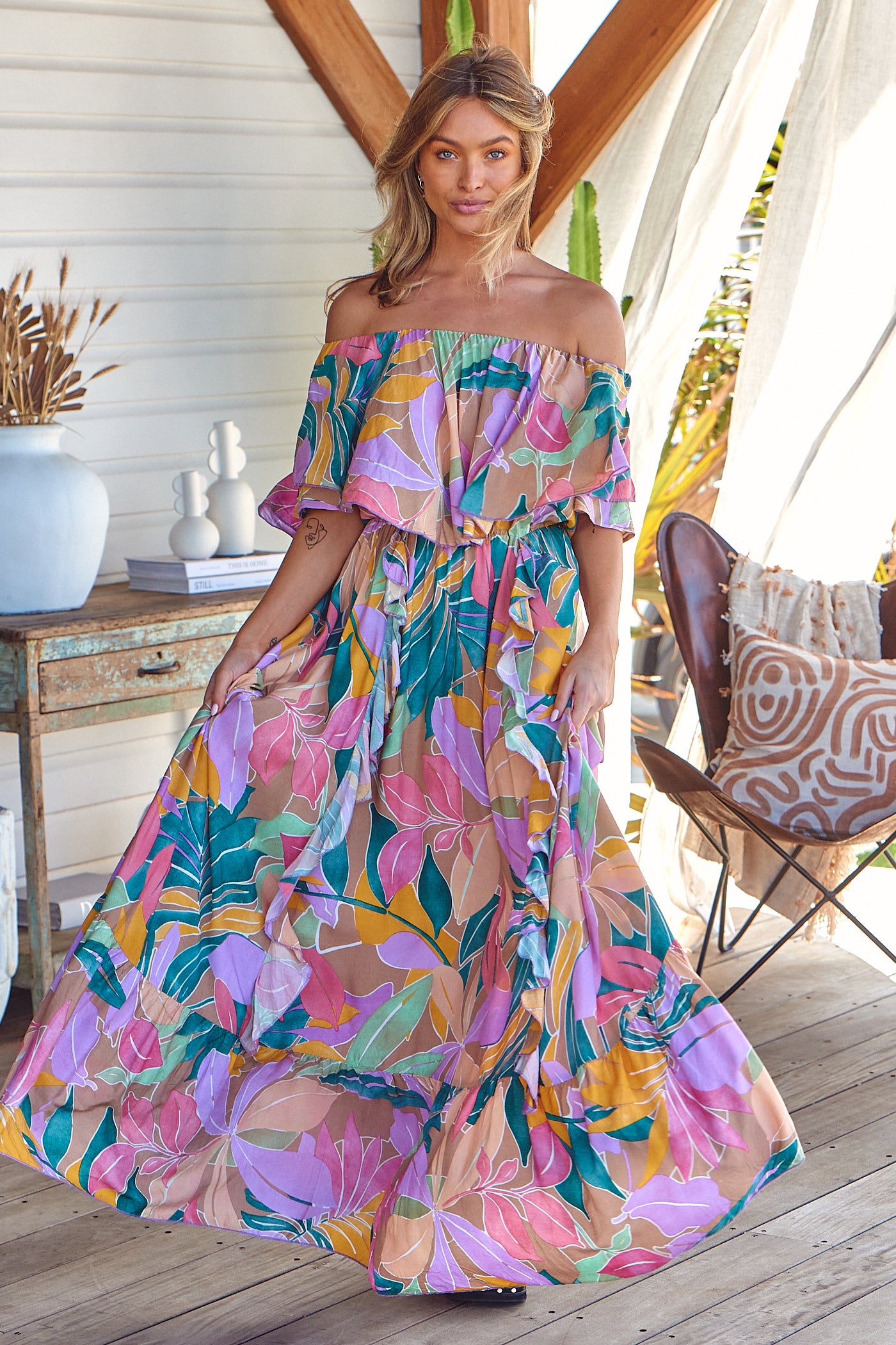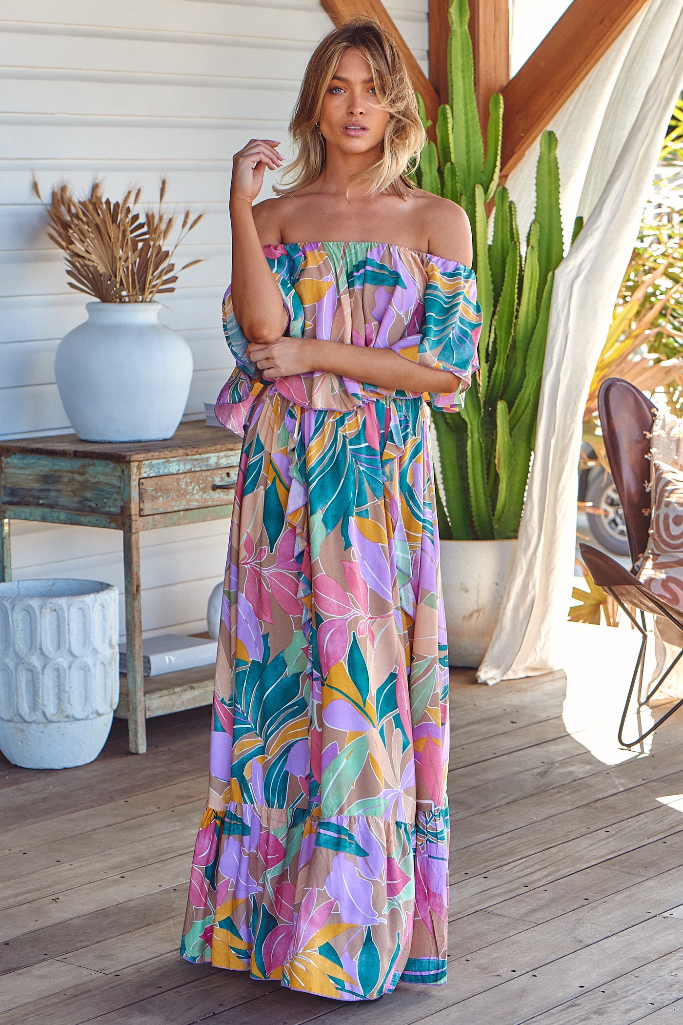 Feel and all the summer vibes in the new Matisse Print Georgie Maxi Dress. This fun and flirty maxi will have you ready for all the good vibes this season. Wear with your favourite tan sandals or heels and some statement jewellery for the perfect boho outfit.