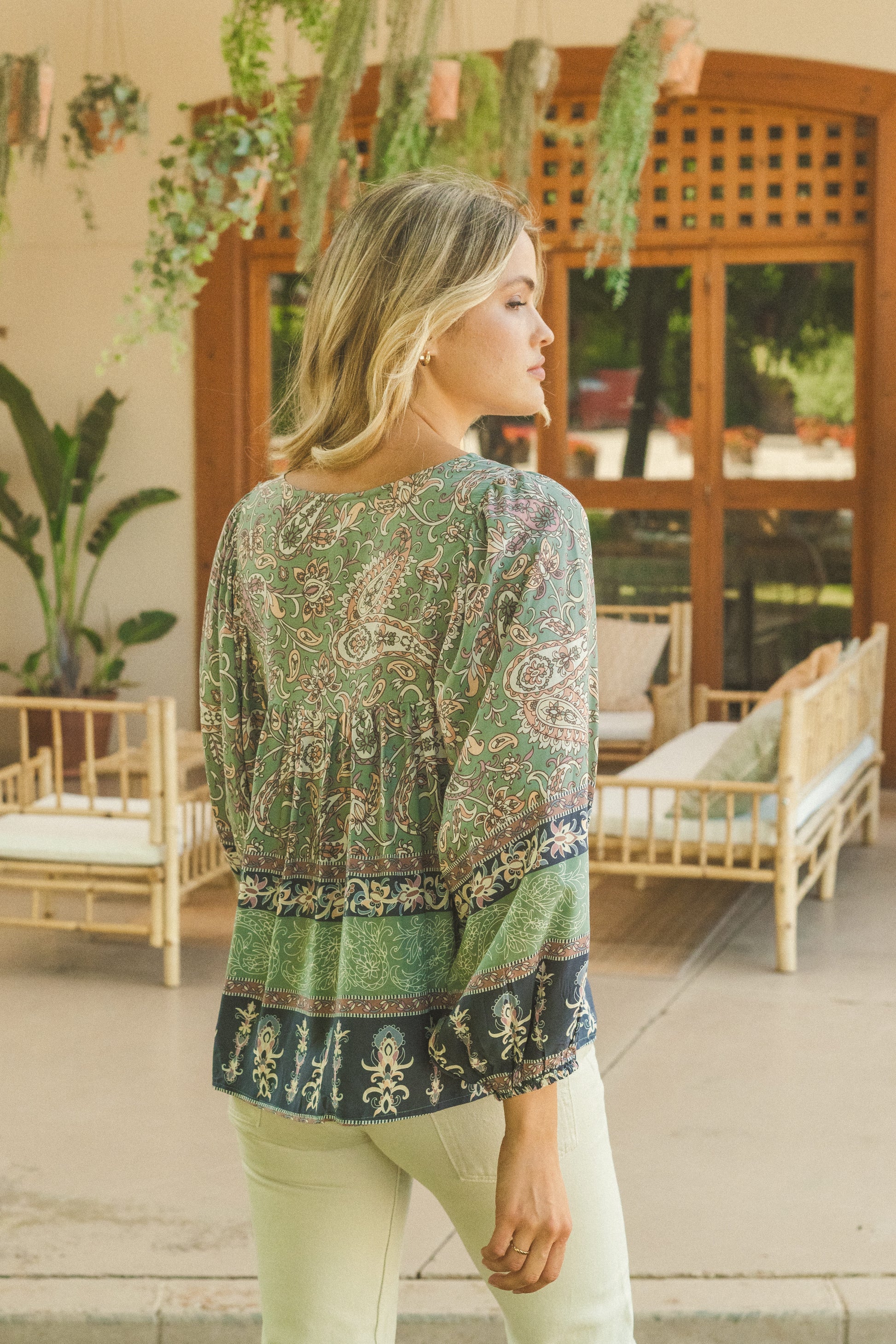 Introducing the Olive Indira Top! With a convenient button opening at the neckline, oversized sleeves, and a relaxed bodice, this top is both stylish and comfortable. Made from 100% Rayon, it's the perfect addition to your wardrobe. (Rayon, but not the kind you'll fall asleep in.)